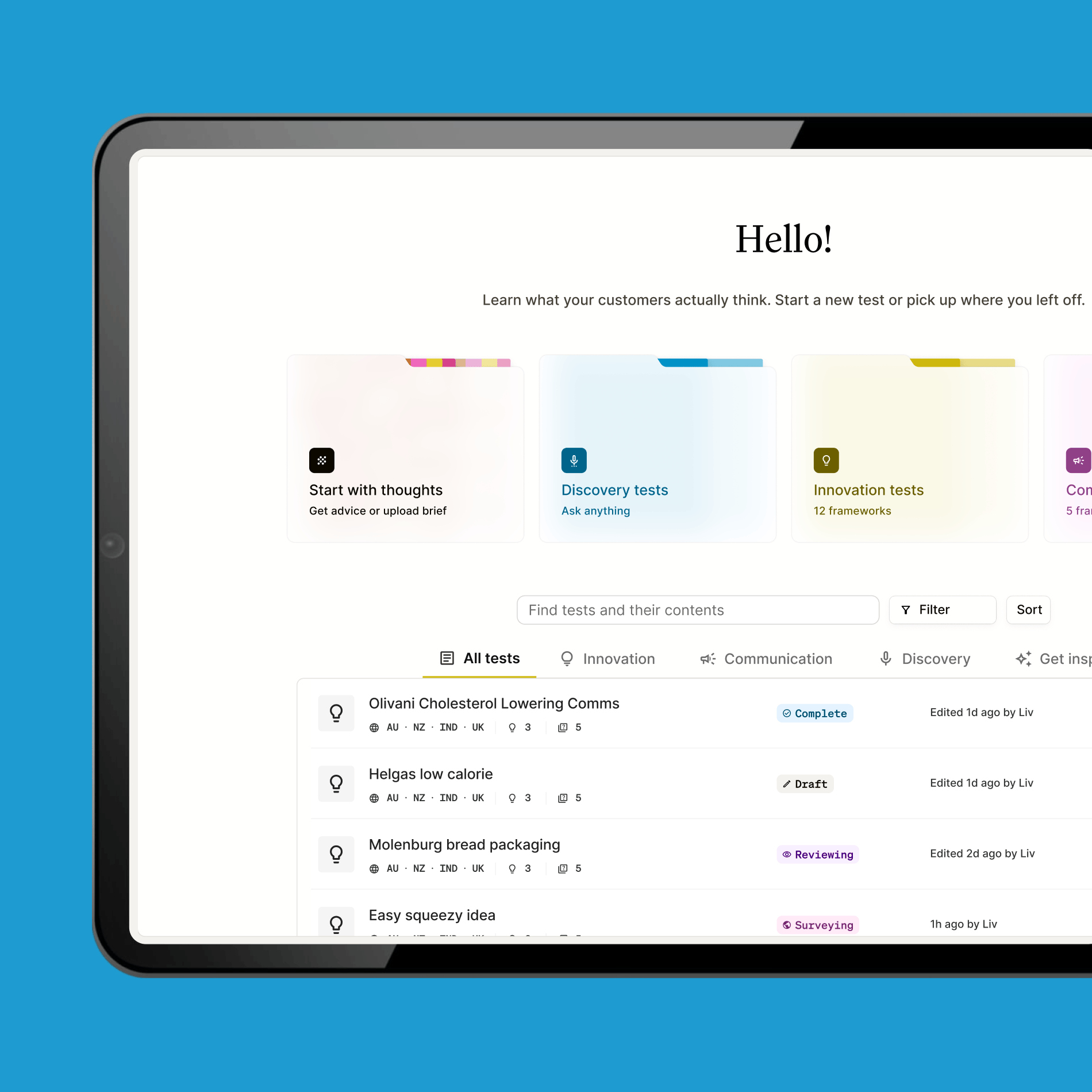 • Use purpose built frameworks to test and iterate ideas with real consumers, overnight