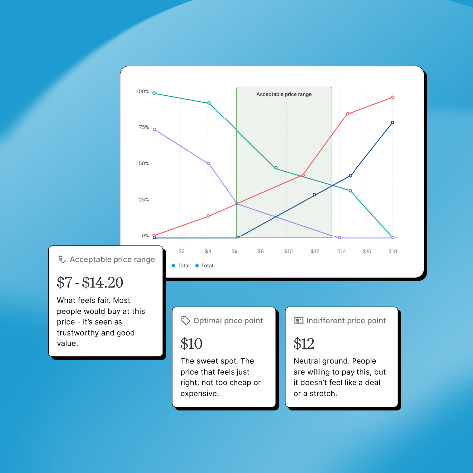 Concept tests, head-to-head, pricing, TURF, and more. Every framework built by researchers, ready for your team to run.